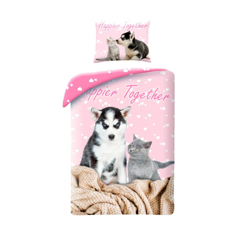 Cicás, Kutyás Happier Together ágyneműhuzat 140×200cm, 70×90 cm