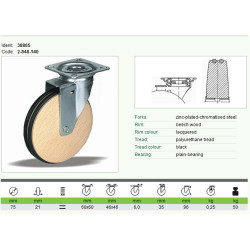 Ez a fa burkolatú bútorgörgő 75 mm-es méretével ideális kisebb bútorok, székek vagy polcok mozgatásához. Strapabíró kivitel, csendes futás, padlókímélő konstrukció. Könnyen felszerelhető és hosszú élettartamú, elegáns megjelenéssel.