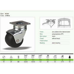 A fekete talpas bolygó bútorgörgő 45 mm-es méretben, kompakt kialakítással készült. Könnyen forgatható, csendes és tartós, ideális gurulós székekhez, kis polcokhoz vagy asztalokhoz. Modern megjelenésű és padlókímélő.
