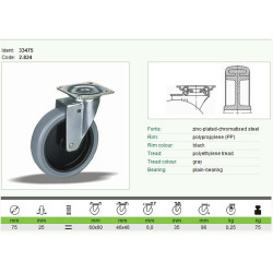 A 75 mm-es szürke talpas bútorgörgő univerzális megoldás kisebb bútorok mozgatására. Könnyen gurul, csendesen működik és kíméli a padlót. Tartós műanyag ház, praktikus rögzítés, modern megjelenés jellemzi.