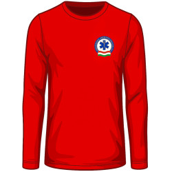 OMSZ MENTŐK, Piros Környakas póló, hosszú ujjú, 100% pamut