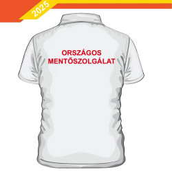 Az „ORSZÁGOS MENTŐSZOLGÁLAT" felíratos póló váltja fel a régi „OMSZ MENTŐK" pólót. Fehér galléros (piquet) póló: 50% pamut - 50% poliészter. Bal mell részen ÚJ „ORSZÁGOS MENTŐSZOLGÁLAT” logó. Háton felső részen középen elhelyezett piros „ORSZÁGOS MENTŐSZOLGÁLAT” felirat. (S-M ~7x24 cm; L-2XL ~9x30 cm; 3XL-5XL ~11x38 cm).