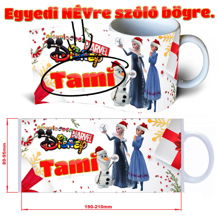 Az OVISsOKk.hu és a KZIWEB Designed támogatásával egyedi NÉVvel ellátott Disney, MARVEL, nickelodeon és Mickey-Minnie mintás ünnepi bögre.
