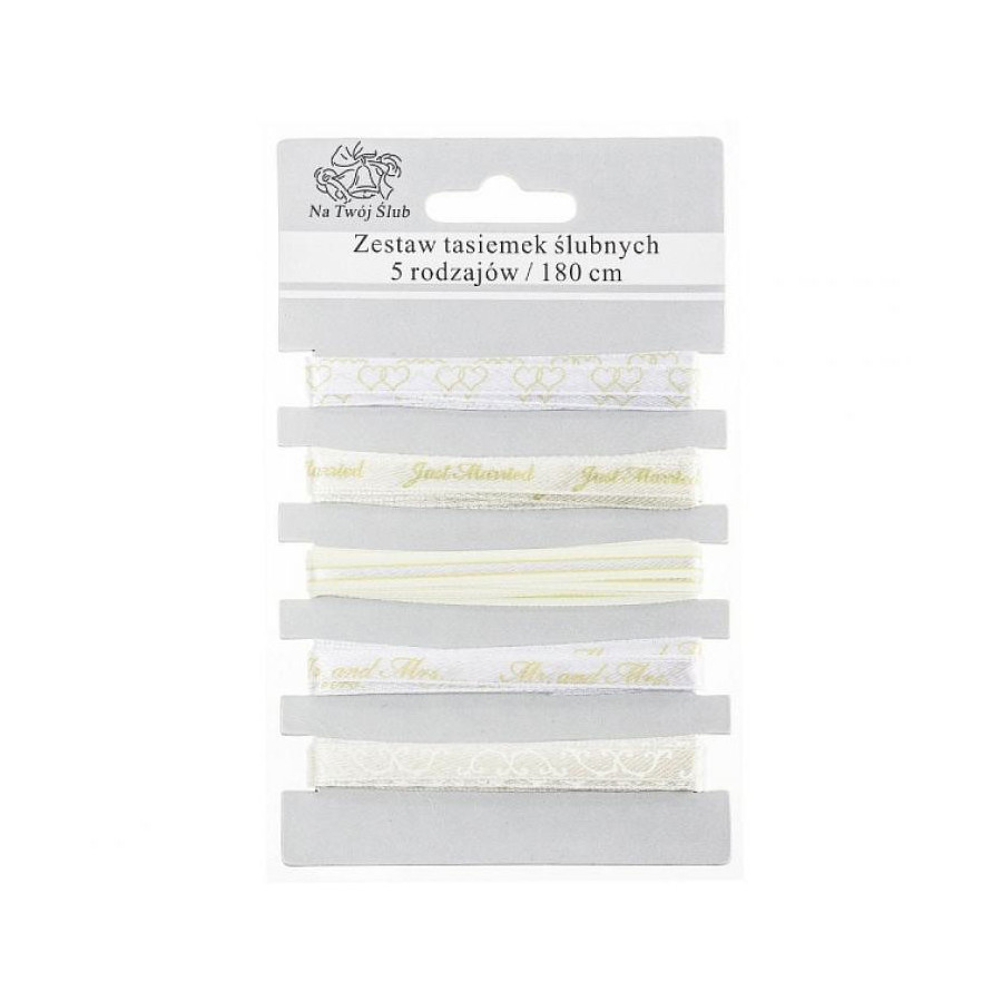 A készlet 5 db szalagot tartalmaz nyomatokkal és feliratokkal, mindegyik 180 cm hosszú.