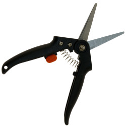 21 cm-es szüretelő olló üvegszálas nyéllel, éles acélpengével.