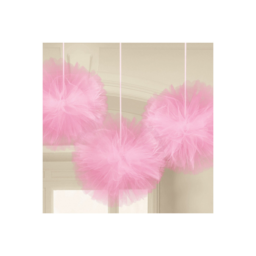 Pink, Rózsaszín függő tüll pom pom dekoráció 3 db-os