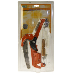 Kombinált hernyózó olló beépített fűrésszel. Sokoldalú kerti metszőeszköz.