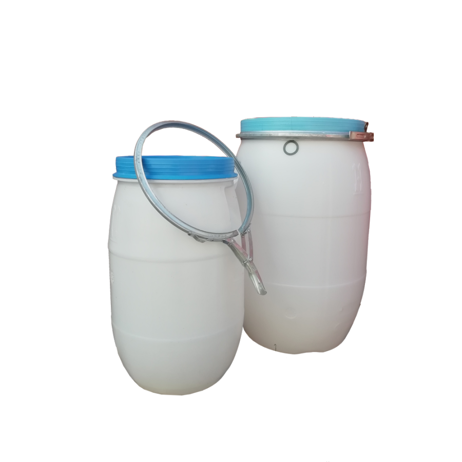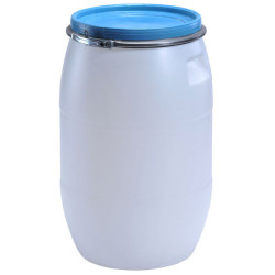 Könnyített, csatos fedelű 30 L-es hordó.