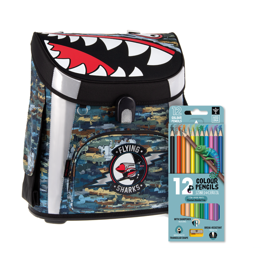 Az Ars Una Flying Sharks iskolatáska + ajándék ceruzakészlet tartalmazza: