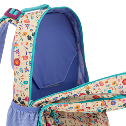 Hátoldala teljes felületével a gyermek hátához illeszkedik, tehermentesítve ezáltal a gerincoszlopot.
