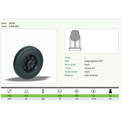 A 100 mm-es fekete műanyag felnis sikló kerék könnyű, mégis erős kivitel. Sima futása és kopásálló anyaga hosszú élettartamot biztosít. Alkalmas háztartási, ipari vagy logisztikai használatra.