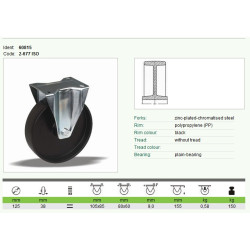 125 mm-es fekete, fix polipropilén (PP) siklócsapágyas kerék, könnyű és tartós kivitel.