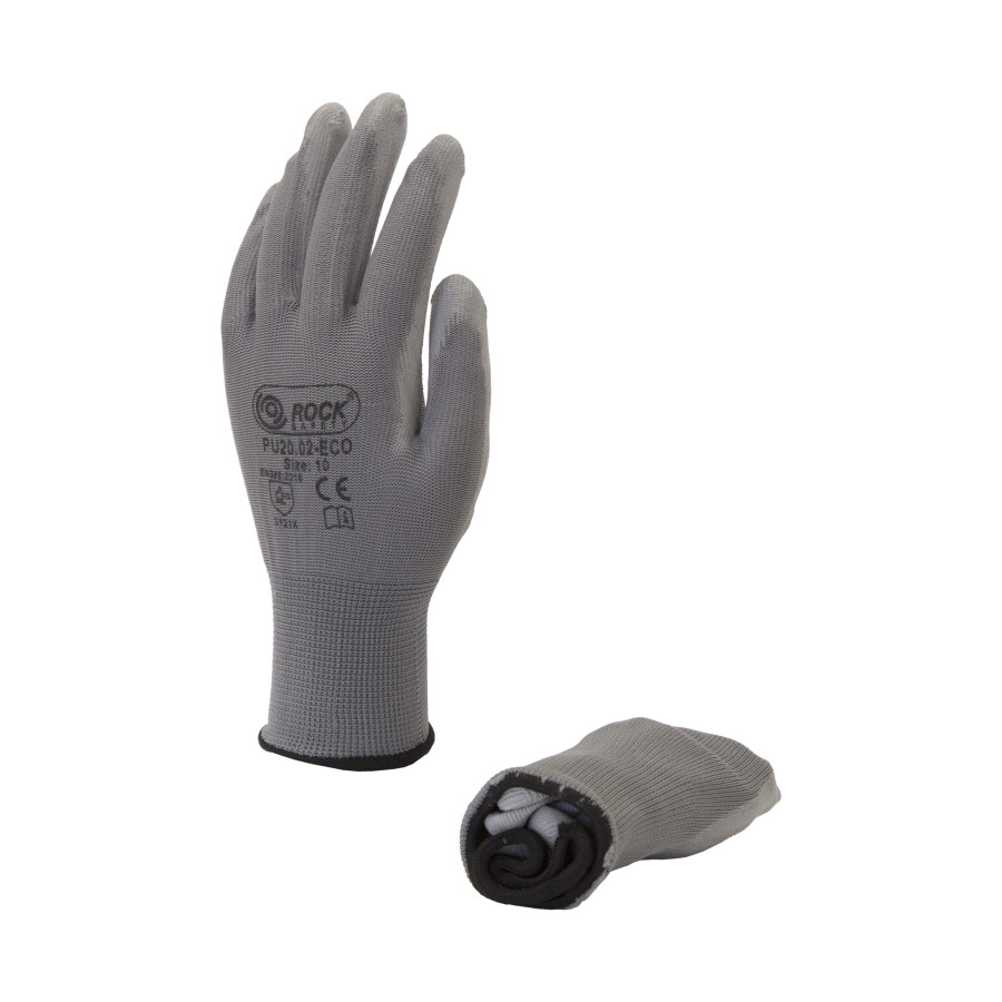 PU20.02-ECO-F - Poliészter szerelőkesztyű PU tenyérmártással, gazdaságos változat ROCK Safety