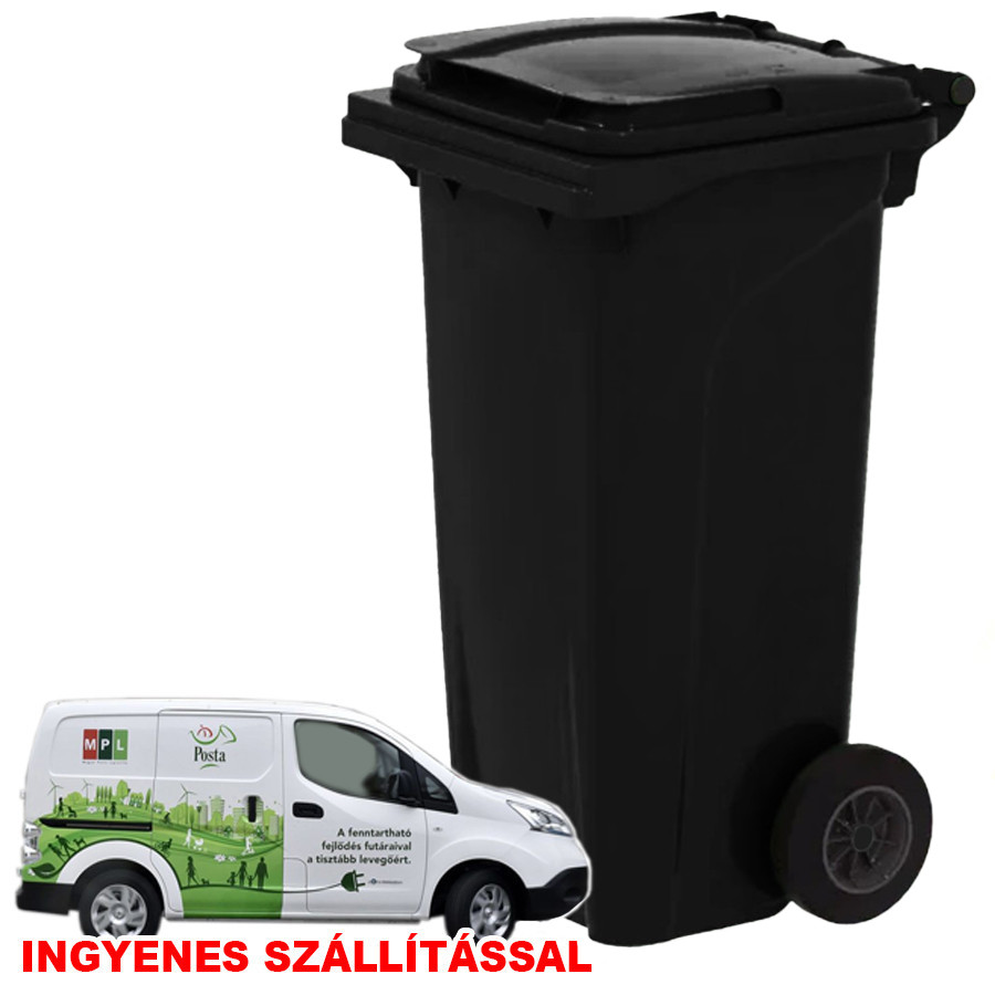 Háztartási kuka 120L-es, kerekes, fekete - [INGYENES SZÁLLÍTÁSSAL*]
