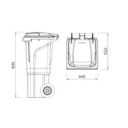 A záródó fedél biztonságosan rögzül, megakadályozva a kellemetlen szagok kijutását és a rovarok bejutását. A két gumírozott kerék stabil, csendes gördülést tesz lehetővé, így a kuka mozgatása még teljes töltet mellett is egyszerű és halk.