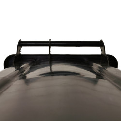 Szürke színű háztartási szemetes kuka, újrahasznosított alapanyagból készült. Űrtartalma 120 liter. Gépi ürítésre alkalmas. Terhelhetősége max. 60 kg.