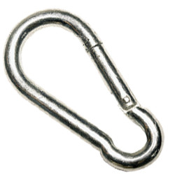 Rugós záródású 100 mm-es karabiner erős acélból, amely gyors és stabil rögzítést biztosít különböző feladatokra.