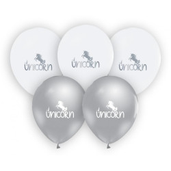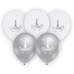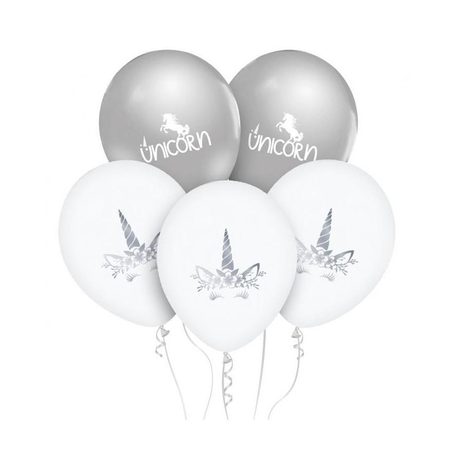 Silver Unicorn, Unikornis léggömb, lufi 5 db-os 12 inch (30cm)