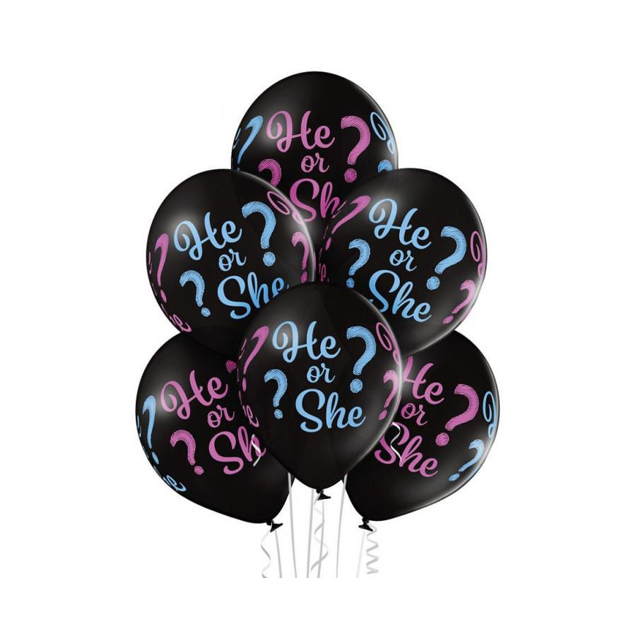 He or She, fiú vagy Lány léggömb, lufi 6 db-os 12 inch (30cm)