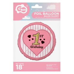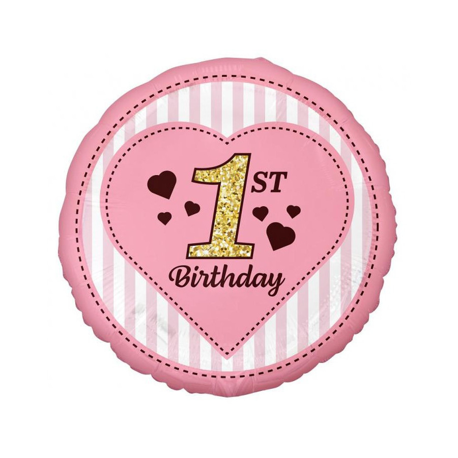 1st Birthday Pink, Első születésnap fólia lufi 36 cm