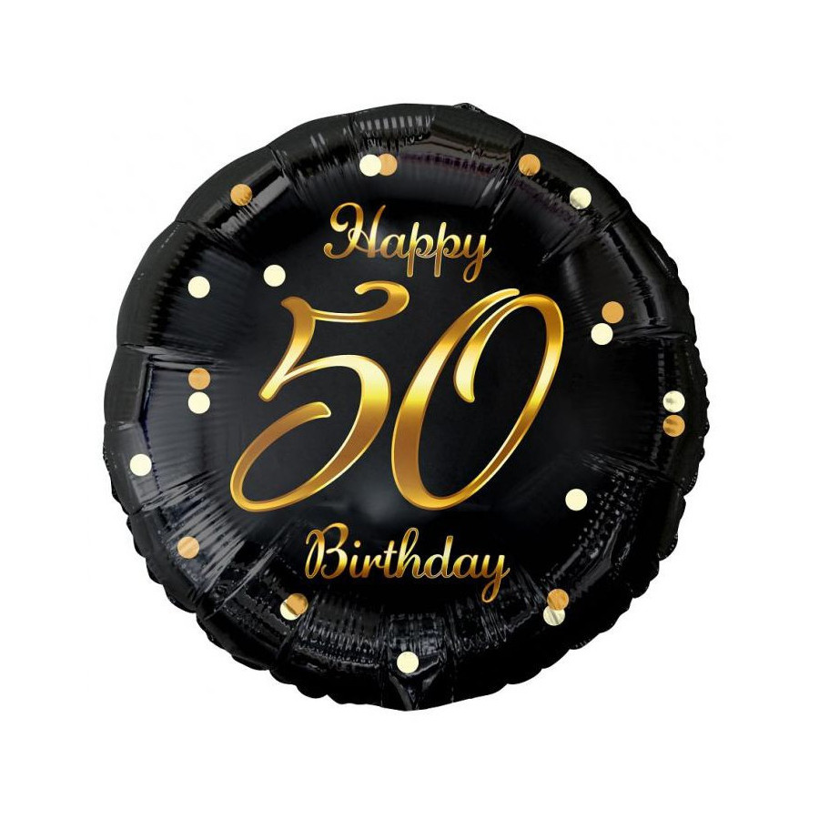Happy Birthday Black-Gold 50 fólia lufi 36 cm