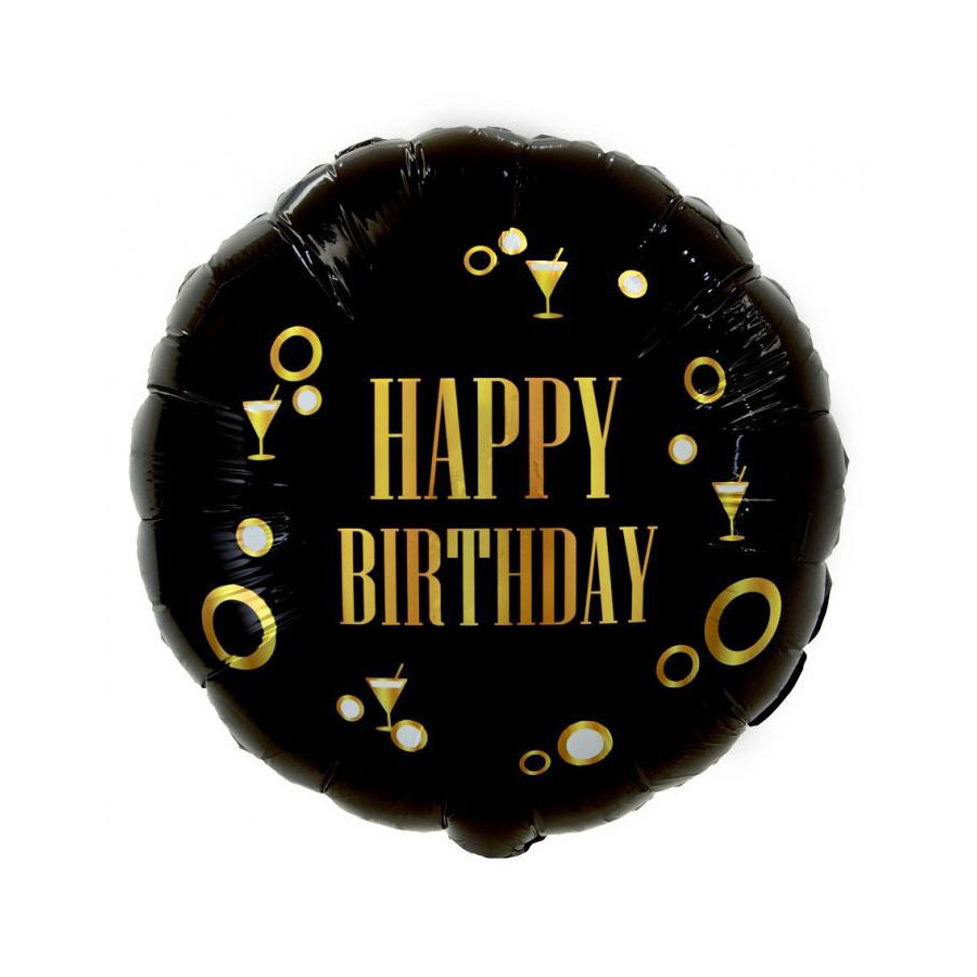 Happy Birthday Black-Gold Party fólia lufi 36 cm