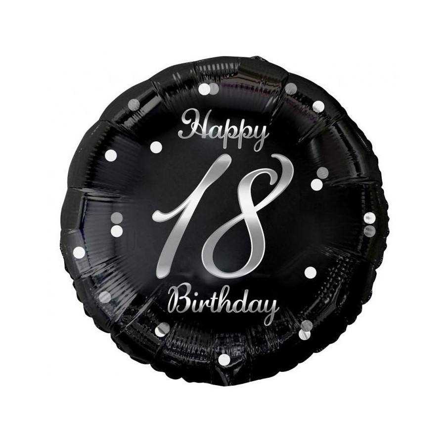 Happy Birthday Black-Silver 18 fólia lufi 36 cm