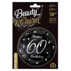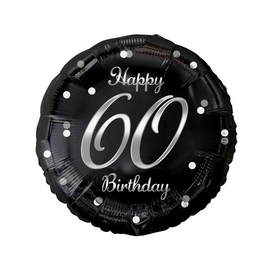 Happy Birthday Black-Silver 60 fólia lufi 36 cm