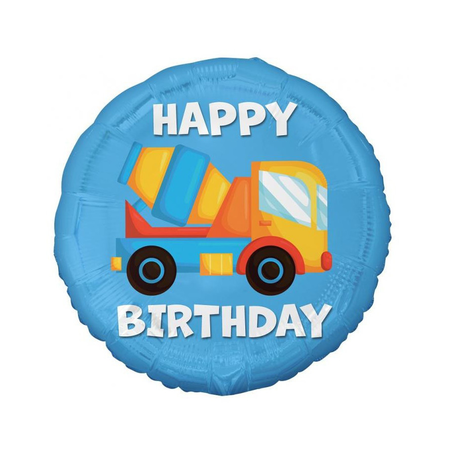 Happy Birthday Concrete Mixer, Betonkeverő fólia lufi 36 cm