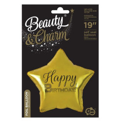 Happy Birthday Gold, Arany csillag fólia lufi 44 cm
