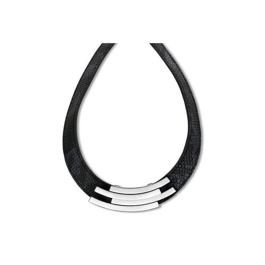Victoria Ezüst színű fekete bőr nyaklánc