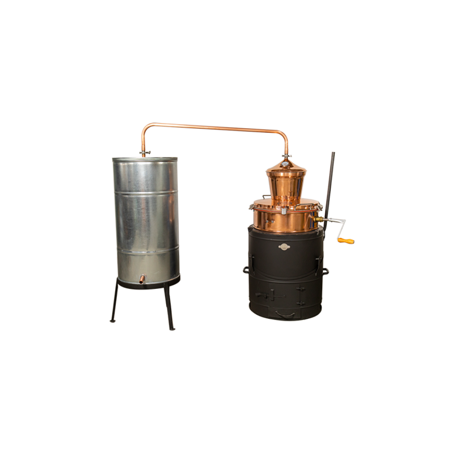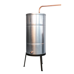 DES pálinkafőző 100 L keverővel, billenős, bilincses zárással, horganyzott. spirálcsöves 200L-es hűtővel