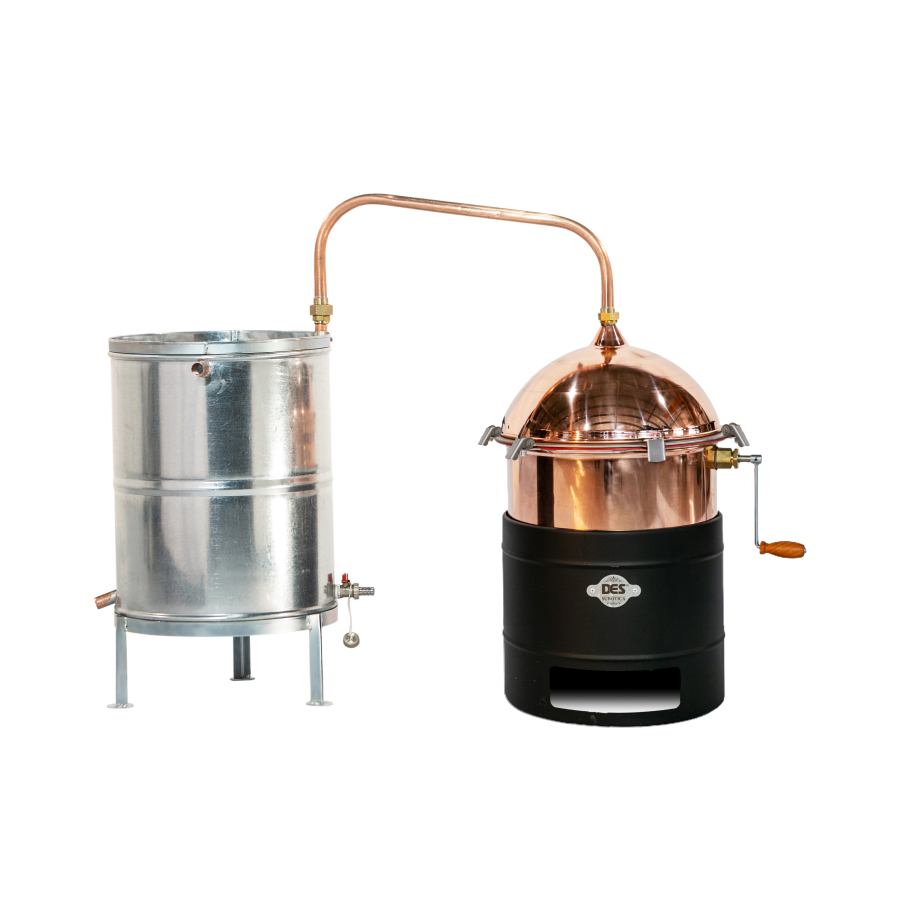 DES pálinkafőző 35 L keverővel, bilincses zárással, horganyzott, spirálcsöves 50 L-es hűtővel