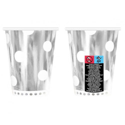 B&C Polka Dots Silver, Ezüst papír pohár 6 db-os 266 ml