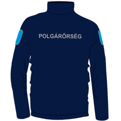 Polgárőrség cipzáras pulóver: 100% kevertszálas. Sötétkék. Jobb felkaron – hímzett OPSZ pajzshoz tépőzárás kialakítással. Bal felkaron – hímzett pajzs, a szervezet címerhez tépőzárás kialakítással. Jobb mell részen fényvisszaverő „POLGÁRŐRSÉG” felirat. Háton felső részen középen elhelyezett fényvisszaverő „POLGÁRŐRSÉG” felirat.