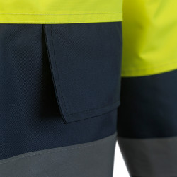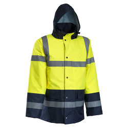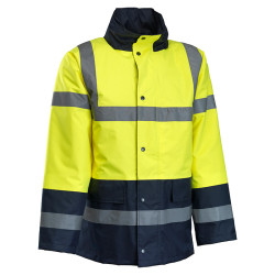• Külső alapanyag: 100% poliészter • Külső alapanyag súly: 190 g/m2 • Belső alapanyag: 100% poliészter, 190T • Belső alapanyag súly: 60 g/m2 • Bélés alapanyag: 100% poliészter • Bélés súly: 170 g/m2 • Fényvisszaverő csíkok • Elrejthető, állítható kapucnival • 2 elülső zseb, zsebfedővel • 1 rejtett zseb a cipzár mellett • Cipzáras záródás, patentos cipzárfedővel • Kötött passzés mandzsetta a kabáton belül • Steppelt belső • Szín: fluoreszcens sárga