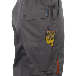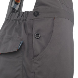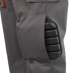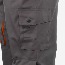 • Alapanyag: 65% poliészter, 35% pamut • Alapanyag súly: 245 g/m2 • 2 svédzseb, 2 farzseb, 1 szitázható mellzseb, 2 oldalzseb, 1 elülső combzseb, oldalsó szerszámtartó zseb • Állítható, gumírozott vállpánt • Állítható, gumírozott derékbőség • Tépőzáras dupla térdfolt a térdvédő elhelyezésére • 60 °C-on mosható • Szín: szürke-narancs