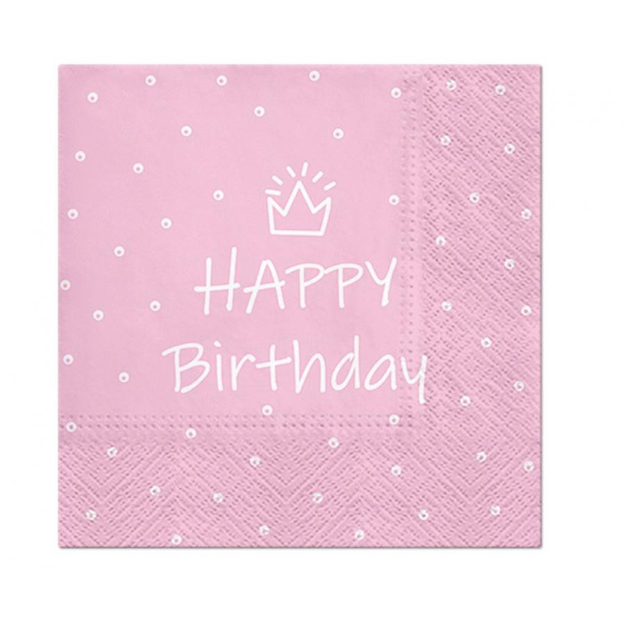 Happy Birthday Light Pink szalvéta 20 db-os 33x33 cm