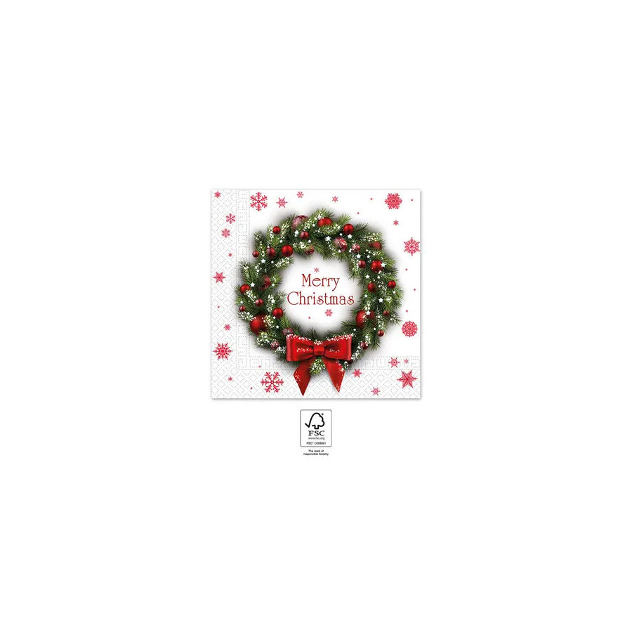 Merry Xmas Wreath, Karácsony szalvéta 20 db-os FSC