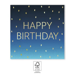 Happy Birthday Golden Blue szalvéta 20 db-os 33x33 cm FSC