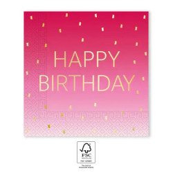 Happy Birthday Golden Pink szalvéta 20 db-os 33x33 cm FSC