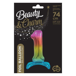 Rainbow, Színes 1-es szám fólia lufi talppal 74 cm