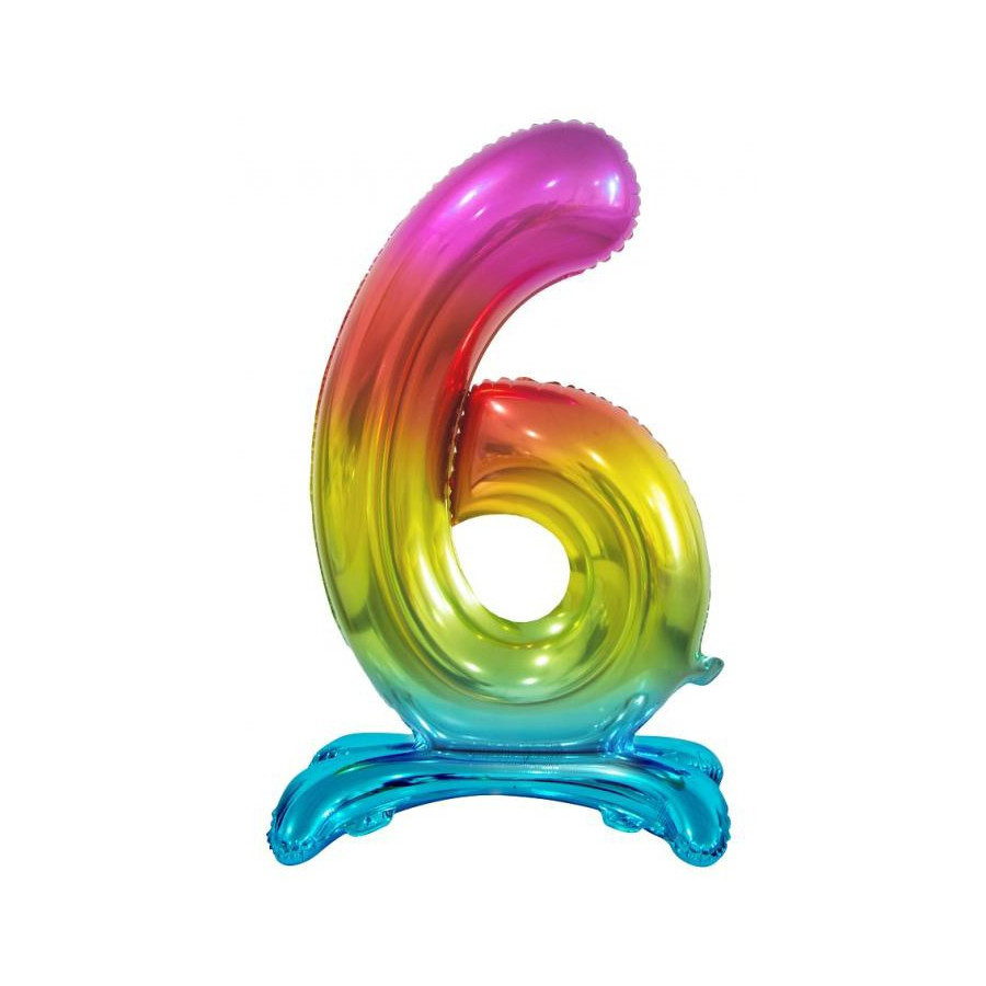 Rainbow, Színes 6-os szám fólia lufi talppal 74 cm