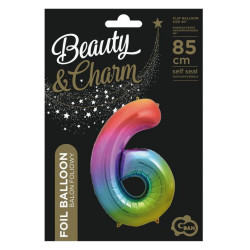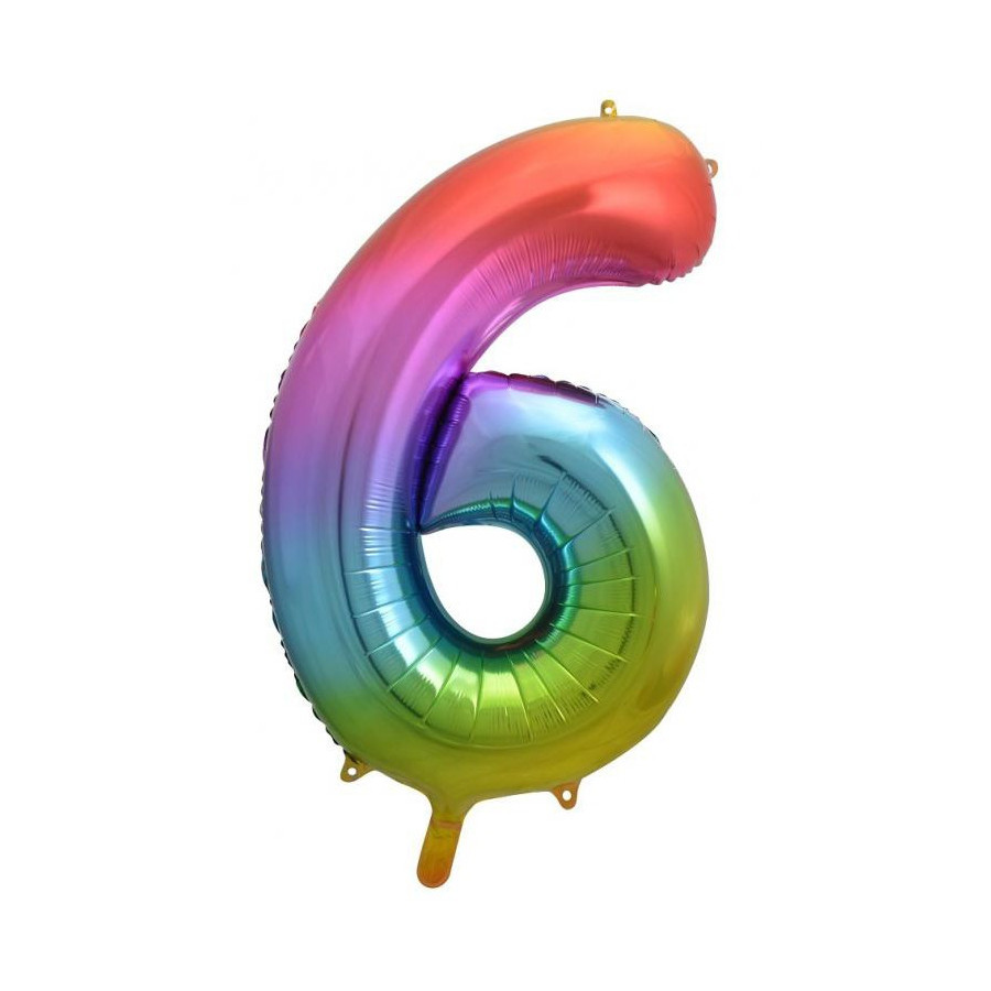 Rainbow, Szivárvány 6-os szám fólia lufi 85 cm