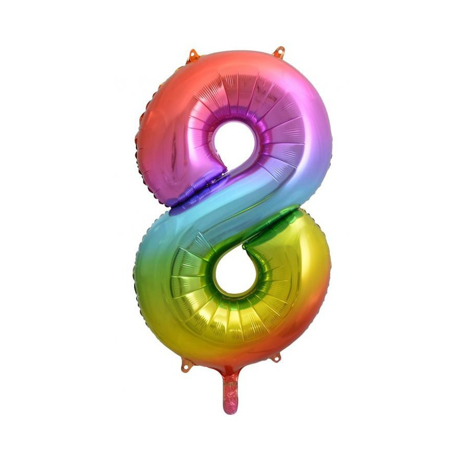 Rainbow, Szivárvány 8-as szám fólia lufi 85 cm