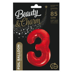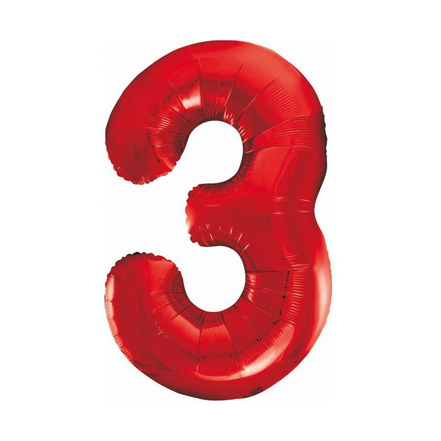 Red, Piros 3-as szám fólia lufi 85 cm
