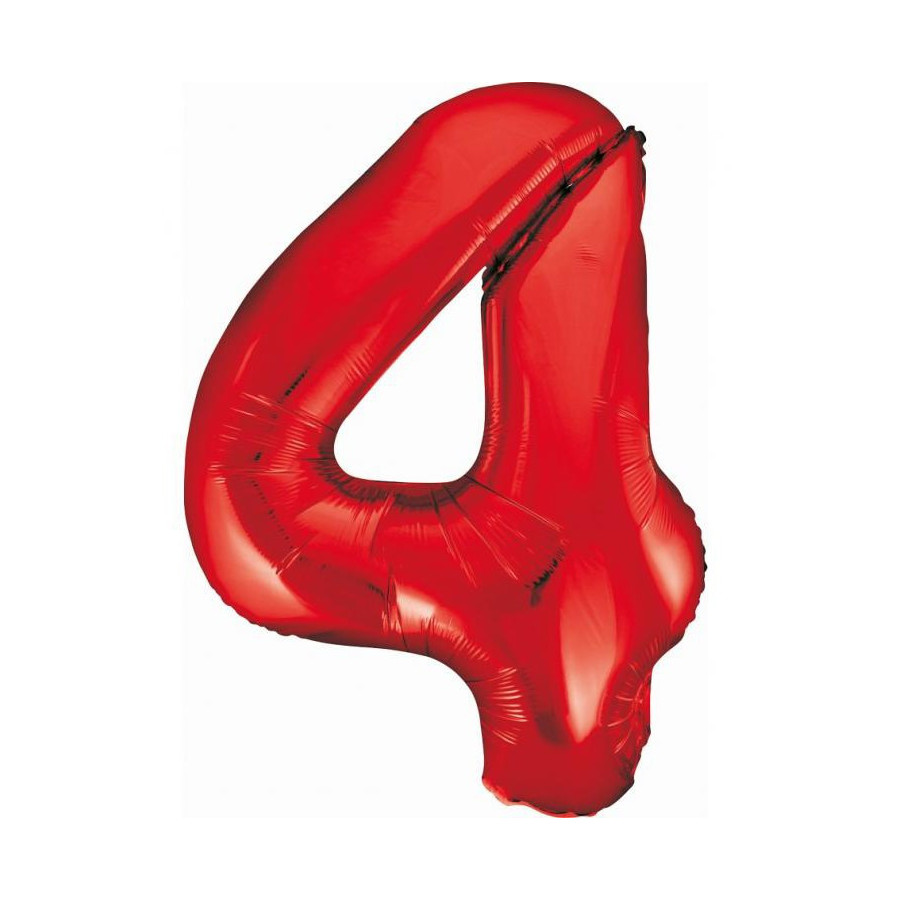 Red, Piros 4-es szám fólia lufi 85 cm