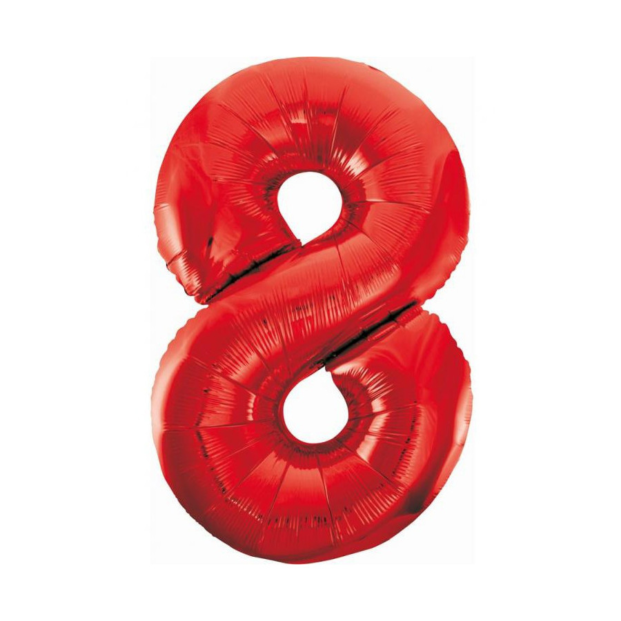 Red, Piros 8-as szám fólia lufi 85 cm