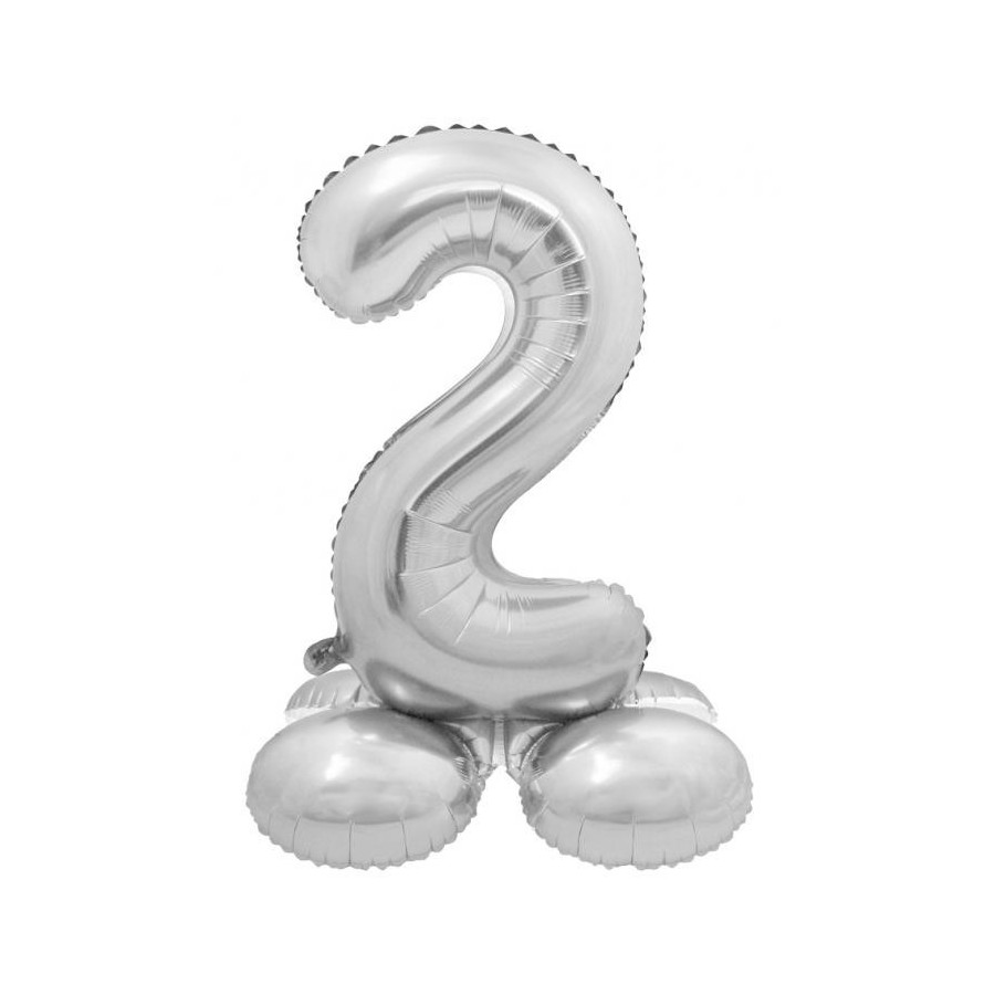 Silver, Ezüst 2-es szám fólia lufi talppal 72 cm