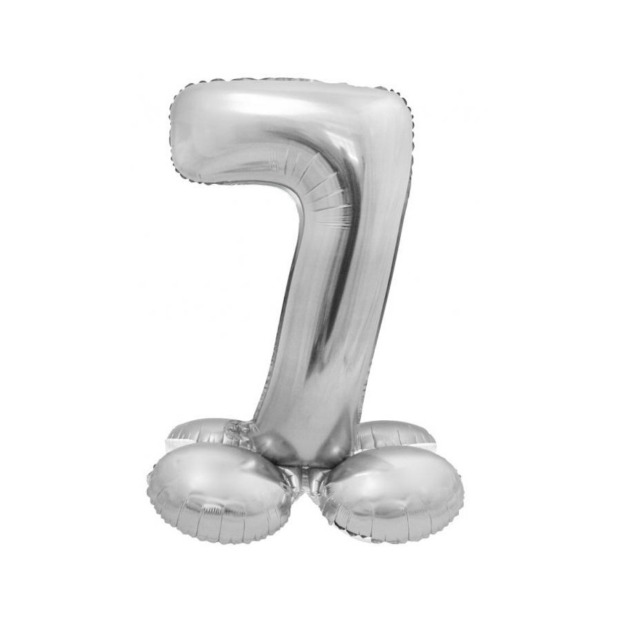 Silver, Ezüst 7-es szám fólia lufi talppal 72 cm
